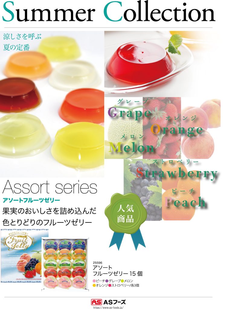グレープ・オレンジ・メロン・ストロベリー・ピーチ、5つのフレーバーが楽しめるゼリーセット。